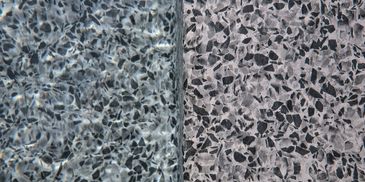 A smooth mix of marble and glass PolishedScapes® aggregate polished with diamond abrasives. Mirrored highlights that sparkle in the sun.